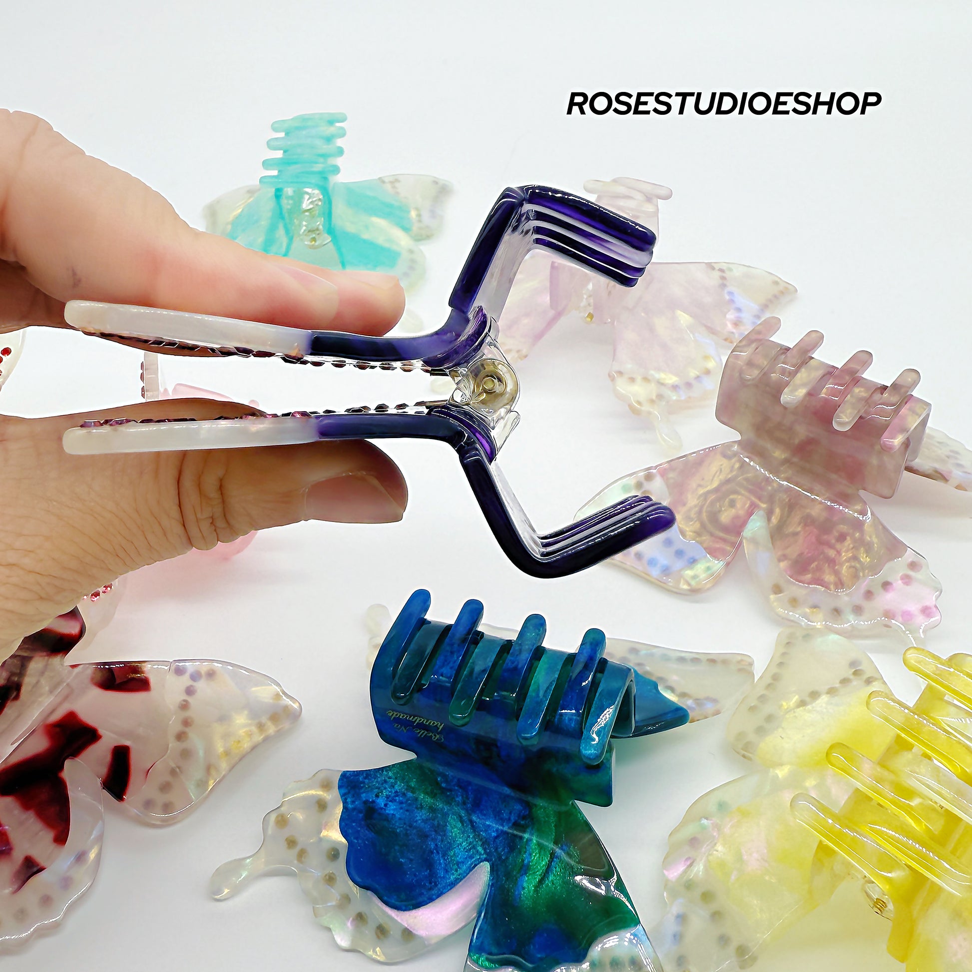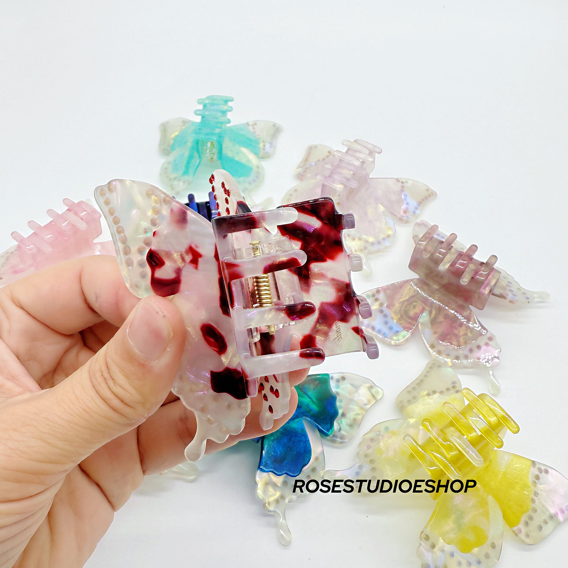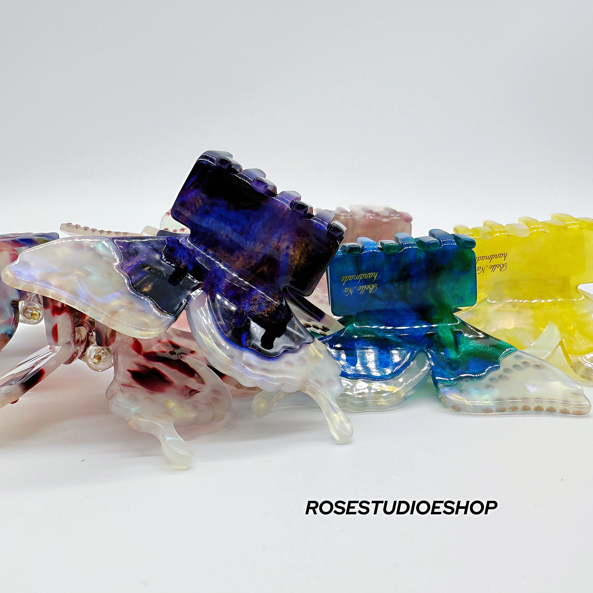 De acetaat haar klammen van Rosestudio zijn met zorg door Rose zelf geselecteerd. Elke stijl is uniek en prachtig. Sommige kleuren en modellen zijn maar één keer op voorraad – op is echt op. Zie je iets leuks? Wacht dan niet te lang!